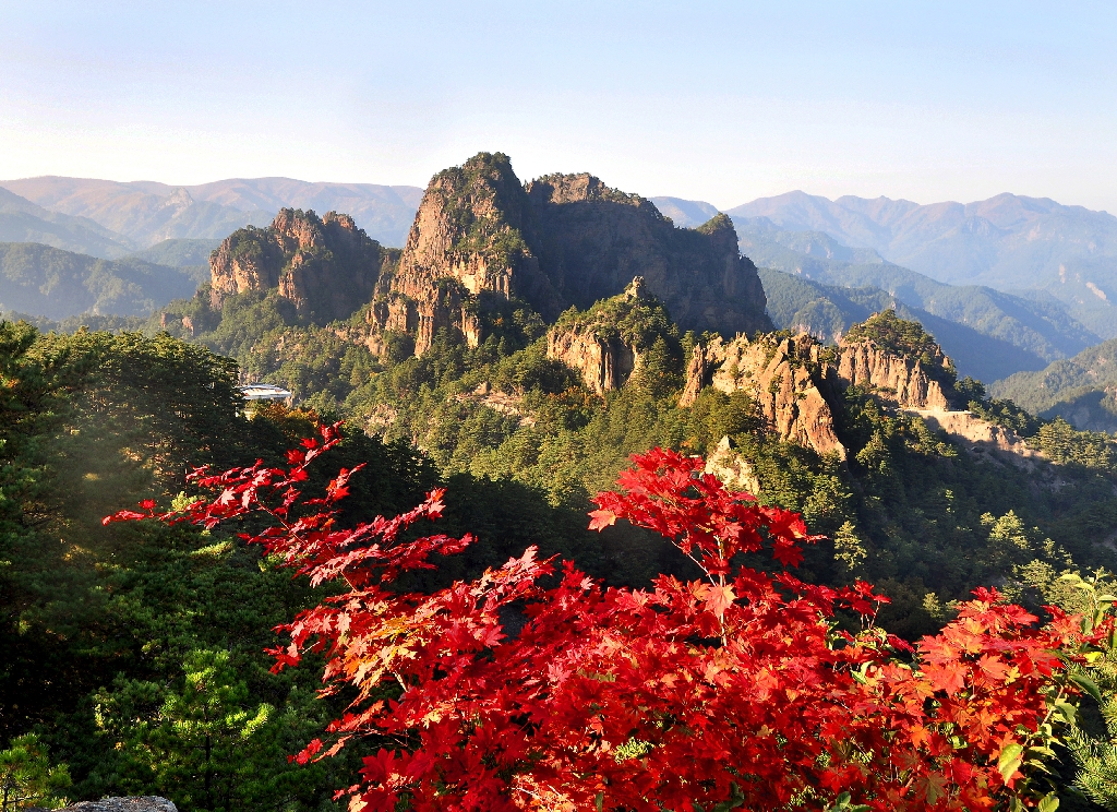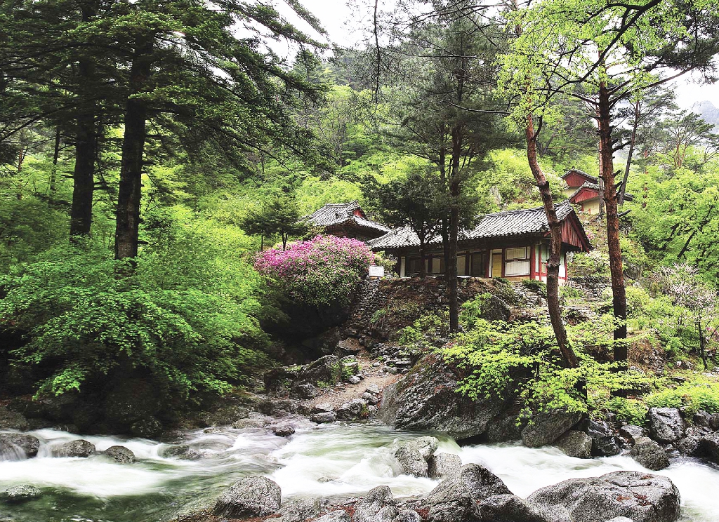 Main Shrine of Pohyon Temple and 13-storeyed Pagoda on Mt Myohyang