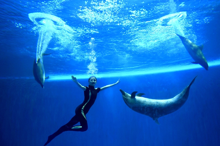 Synchronized swimming at Rungna Dolphinarium